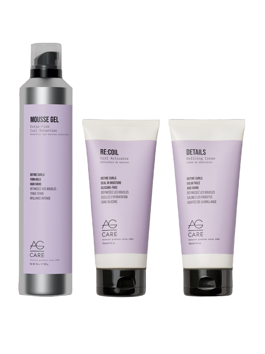 Choose your curl adventure with these bestselling stylers. For crunch-free curls with soft-medium hold, try Re:coil. For big curls that stay intact, Mousse Gel. For shiny, hydrated curls without hold, use Details. Or combine a few to customize your curls.
