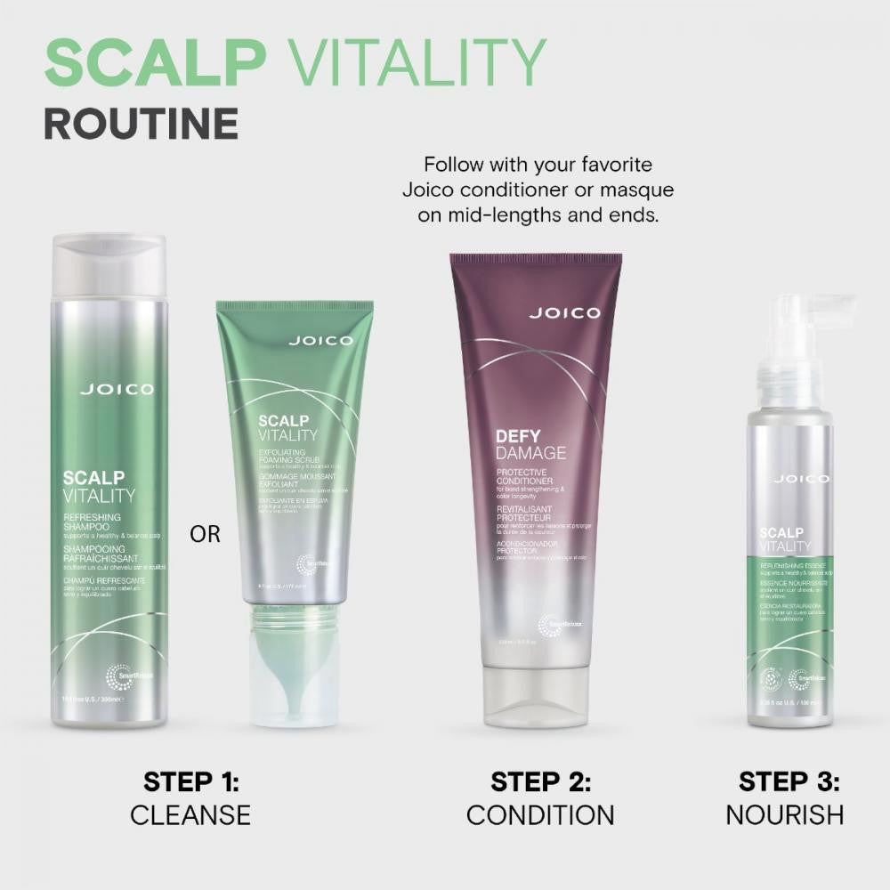 Joico Scalp Vitality Shampoo is a revitalizing cleanser designed to purify the scalp and promote a healthy foundation for hair growth. Its gentle yet effective formula helps remove buildup while delivering a refreshing, cooling sensation. Ideal for maintaining a balanced scalp environment, this shampoo leaves hair feeling clean, fuller, and refreshed.